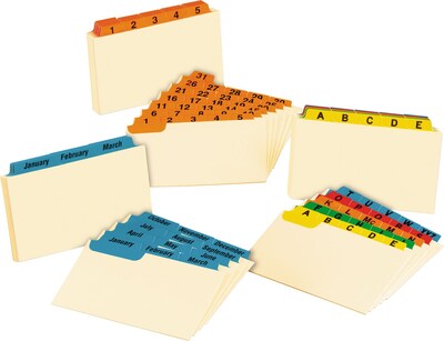 Manila index card guides with laminated tabs are great for organizing desktop referencing and managing follow up files.