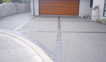 Exposed aggregate driveways and paths are finished with an acid wash and sealing.